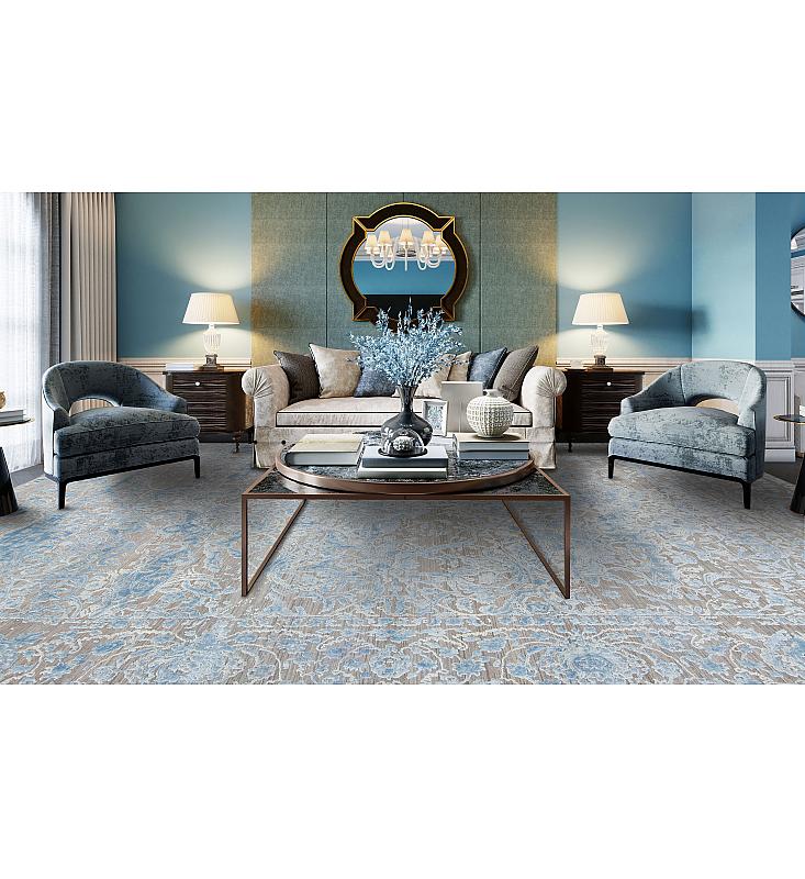 The striking Epic Collection offers elegant transitional designs in a variety of dynamic shades. Epic rugs are made with an oxidized hand-carded wool ground and adorned with hand-spun silk motifs, which provide a unique and magnetic texture.